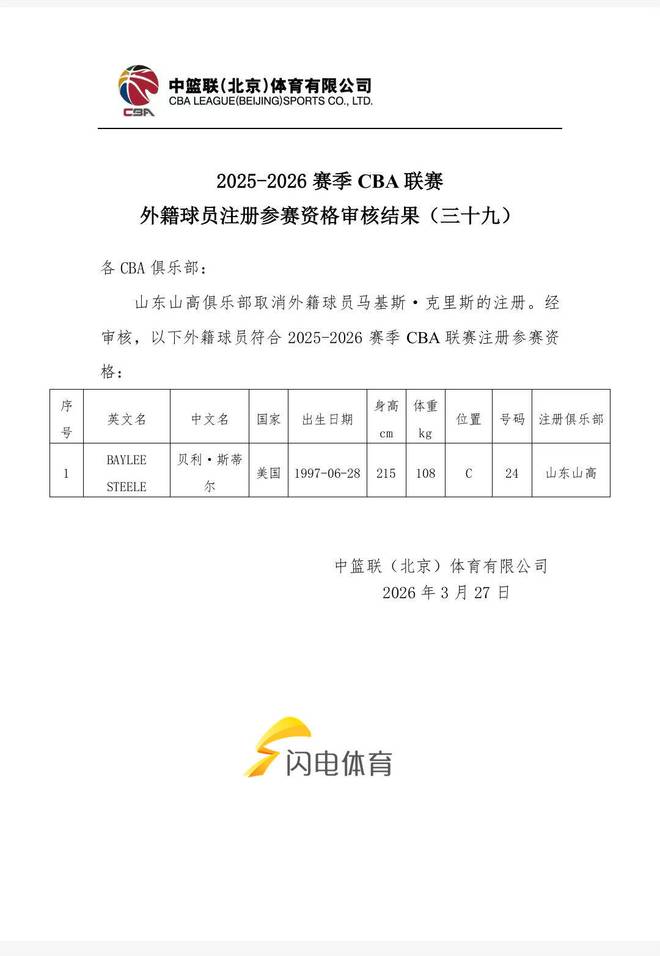 - 就是快!山東高速外援斯蒂爾完成注冊(cè),今晚戰(zhàn)山西可以出戰(zhàn)