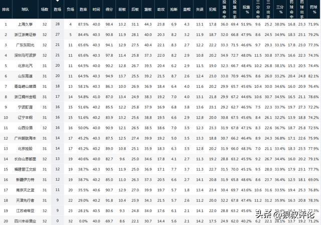 上海男籃毫無疑問是目前第一爭冠熱門,多項數(shù)據(jù)位居聯(lián)盟第一。
