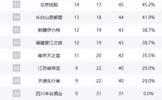 江蘇肯帝亞與天津先行者已無懸念,分別落后10勝以上,季后賽希望渺茫。天津遭遇七連敗,四川金強則創(chuàng)下跨賽季31連敗的CBA歷史最差紀錄,賽季已無懸念。
