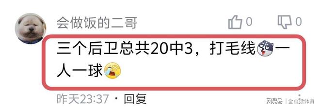 遼寧隊(duì)4大主力糟糕的表現(xiàn),賽后也被球迷們紛紛吐槽。“遼寧一群人真像一群無頭蒼蠅?!?;“趙繼偉跟郭艾倫的差別就是沒有突破,一旦三分球沒手感你就看吧,全場鐵的一塌糊涂”;“三個(gè)后衛(wèi)總共20中3,打毛線,一人一球”;“遼籃連敗,這會(huì)兒不踩楊鳴繼續(xù)吹烏戈了?就現(xiàn)在這些蝦兵蟹將,誰能攻堅(jiān)?誰能突破?誰又有定點(diǎn)投球能力?最關(guān)鍵的還把遼籃一貫的那種惹不起的作風(fēng)打沒了,全隊(duì)軟趴趴的!我就想知道現(xiàn)在把輸球的鍋甩給誰?”;“遼寧解散吧,可別丟人了,一盤散沙”……