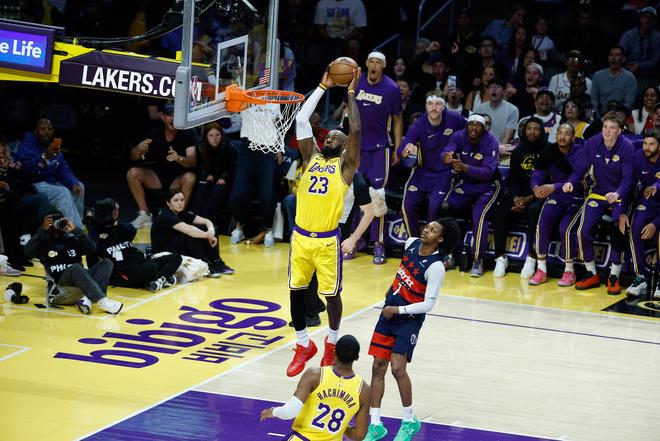 詹姆斯21+10+12三雙 湖人全隊六人得分上雙輕取奇才