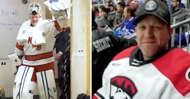 本來第三門將這玩意在NHL一場比賽基本就不太可能上場,但想不到在比賽中,颶風隊的兩名常規(guī)門將分別在第一節(jié)和第二節(jié)受傷退賽在無人可用的絕境下,颶風隊不得不緊急讓這位已經42歲的冰車司機披掛上陣。