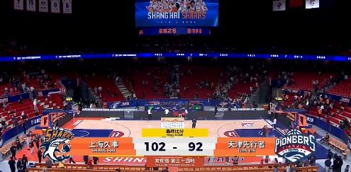 - CBA常規(guī)賽第34輪,上海久事102:92戰(zhàn)勝天津先行者