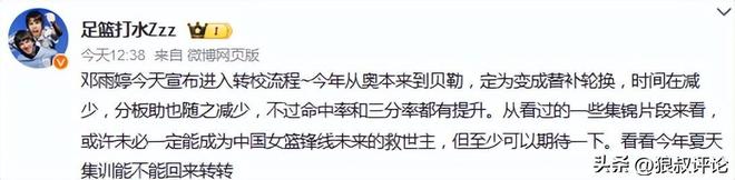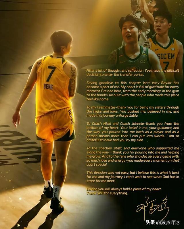 北京時間4月3日,根據(jù)女籃球員鄧雨婷社媒發(fā)文:即將離開貝勒大學(xué),進入轉(zhuǎn)校的話題引發(fā)外界的熱議。