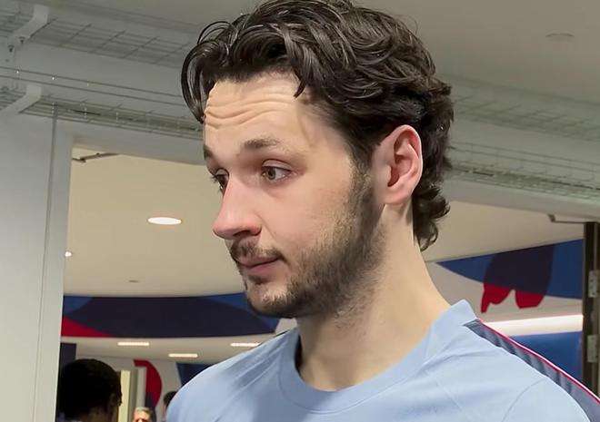 是的,他確實被撞得不輕,但我不知道他現(xiàn)在具體的狀況,還沒和他交流過。不過在更衣室里他恭喜了我,我們平時關(guān)系很好,而且他是個很堅強的人,應(yīng)該沒什么大問題。