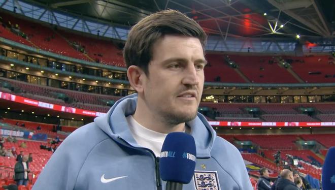 在對(duì)陣烏拉圭的比賽前,英格蘭后衛(wèi)馬奎爾在溫布利球場(chǎng)接受了ITV體育的采訪。