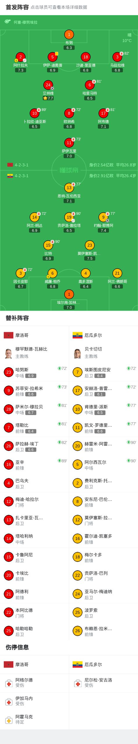 - 半場(chǎng):摩洛哥0-0厄瓜多爾,瓦倫西亞屢造險(xiǎn)