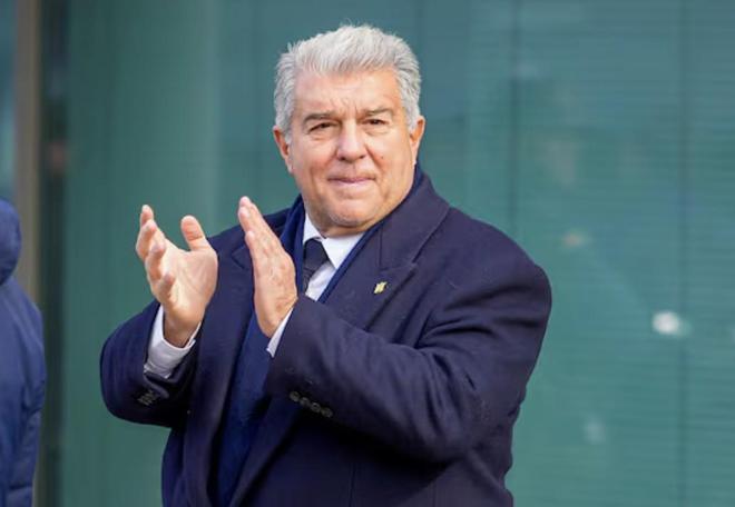 在西甲對陣馬德里競技的賽前,拉波爾塔是焦點人物之一。這位當選主席(7月1日才正式履職)在尤斯特陪同下走進更衣室,與弗里克會面,并為球隊加油打氣,迎接賽季收官階段。